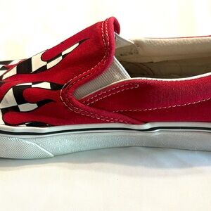 They have been worn a few times, but the color and definition is still good. Has some minor staining in the white checked pattern as seen in pictures.