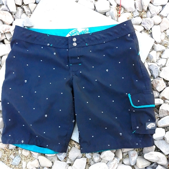 Very cute board shorts with a polka dot and small skull print. In great condtion. No rips or tears. Comes from a smoke free home.