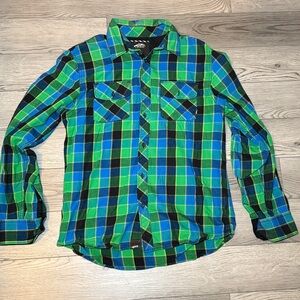 Vans Off The Wall Box Men's Long Sleeve Button Up Plaid Checkered Classic Flannel Shirt Large Green & Blue