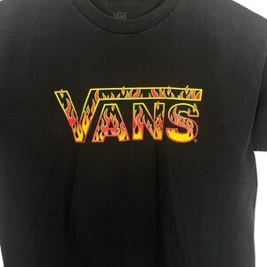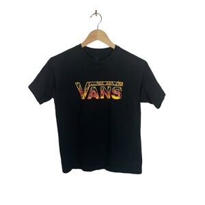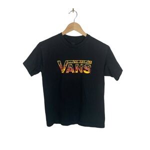 Vans Boy’s Flame Logo Crewneck Tee in Black/Red/Yellow Size M