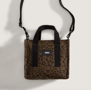 Compact Vans tote with leopard pattern. Black handles and strap. ❌Big enough to hold your credit cards and id.