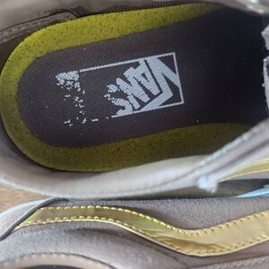 Vans light brown lace-up shoes with gold metallic accents on the side and an added butterfly charm on the laces. These do have some general wear and fading, but the soles are in great condition, and there are just a few scuffed areas. Same-day shipping for orders received on weekdays by noon CST. Make me an offer!