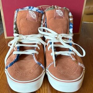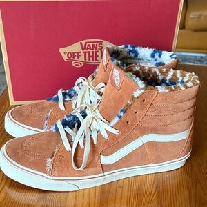 Vans Brown and White High-Top Athletic Shoes faux fur lined nwt in original box
