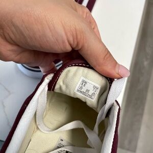 WORN ONCE !!! Stylish Vans sneakers. Burgundy canvas with white accents. Classic design.