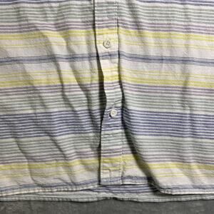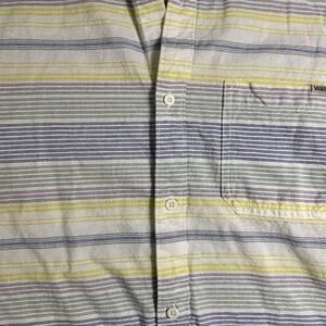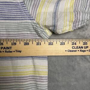 Item: VANS Shirt Men's Large White Blue Green Striped Button Down Short Sleeve Linen