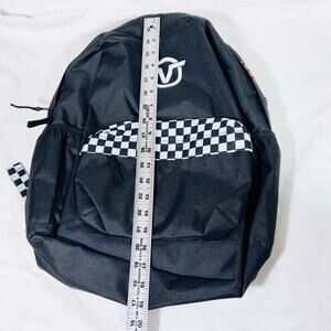 Introducing the Vans Caravaner Classic Backpack featuring a checkered black and multicolor design. This durable book bag is perfect for school or everyday use, offering spacious storage and a classic Vans look. This item is brand new.