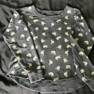 Vans Cat Motif Charcoal Gray Soft Lightweight Pullover Top Size Small