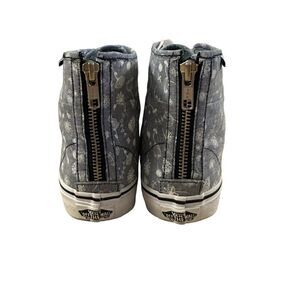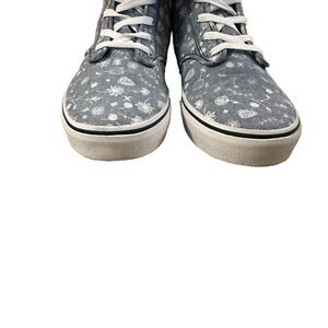 Vans ~ Chambray with white floral print high top laced shoes ~ zippered back ~ 6