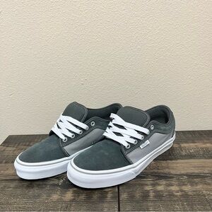 Vans skate shoes in charcoal with white accents. Perfect for skateboarding enthusiasts.