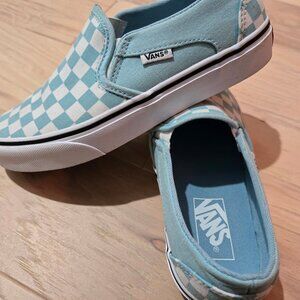 Theory Checkerboard dusty blue. Very comfortable. Easy slip in. Worn two times only. Very good condition.