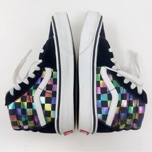 Iridescent checkerboard pattern. Suede base. Very try clean.
