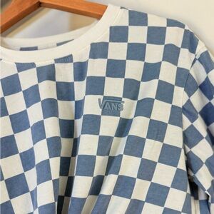 #Vans #VansTop #CheckerboardStyle #Streetwear #SkaterStyle #CasualLook #VansGirl #TrendyTops #TwistKnotTop #BlueAndWhite #SizeSmall #FallStyle #LayeringPieces #PoshStyle #ComfyCute