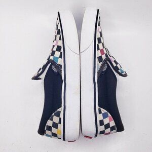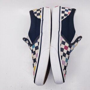 Vans Checkerboard Slip On Sneakers. Black, white and multicolored checks. Insoles show some wear. Pictured for reference. Overall good pre-owned condition.