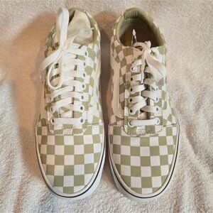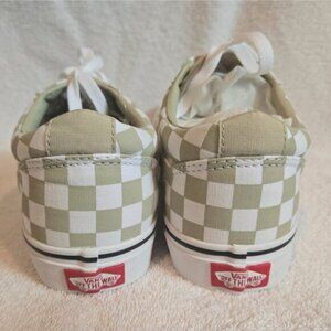 Stylish Vans sneakers with a green and white checkerboard pattern. Features classic lace-up design.