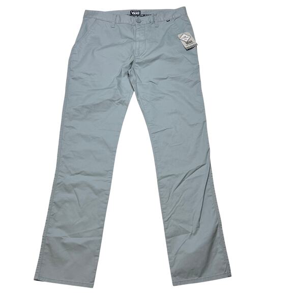 Introducing a pair of Vans Chino Pants for men in size 32x31, featuring a Storm Gray color with a straight, stretchy fit, suitable for skate or casual wear. This item is new.