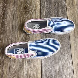 Vans Classic Slip On Blue Pink Striped Boat Sneaker Shoes Low Top Size M 6/W 7.5