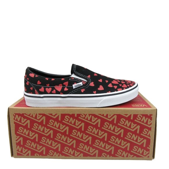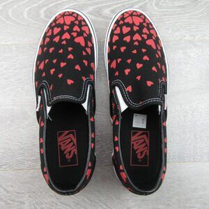 Vans Classic Slip On Hearts Shoes Womens Size 7.5 Black Red NEW