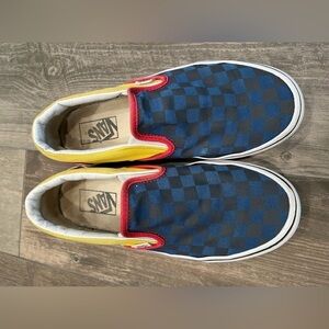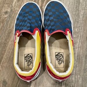 Vans Classic Slip On OTW Rally Shoes Checkerboard Blue Red Yellow Sz M 7 W 8.5.