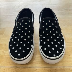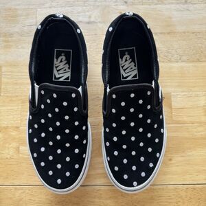 Vans Classic Slip On Platform Suede Shoes Black White Polka Dot Retro W5 M3.5