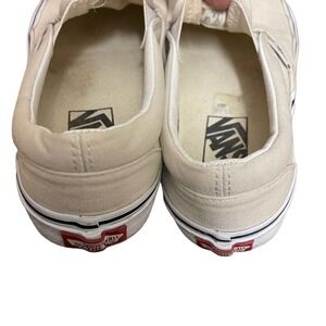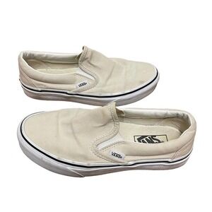 Vans Classic Slip On Off White M 5 W 6.5 Sturdy low profile slip on canvas uppers Padded collars Elastic side accents Signature rubber waffle outsoles Unisex Men 5 Woman 6.5 Color Birch ***CROSSPOSTED*** Tags: Slip on Vans, classic slip on vans, beige vans, unisex vans