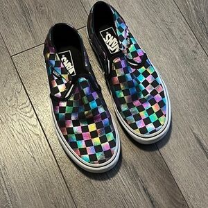 Vans Classic Slip-On 'Iridescent Checkerboard' Rainbow Chex Mens/Women’s maybe worn once. Excellent condition Size 7.5”