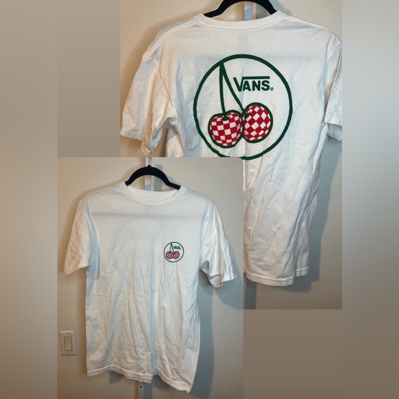 Vans Classic White logo cherry checker t-shirt Cotton Tee Medium