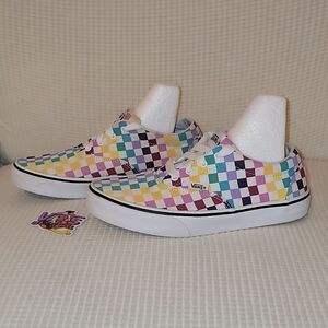 Vans Colorblock Rainbow Checkerboard Lace Up Shoes & Sticker Womens Size 5