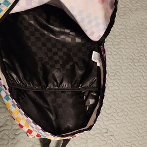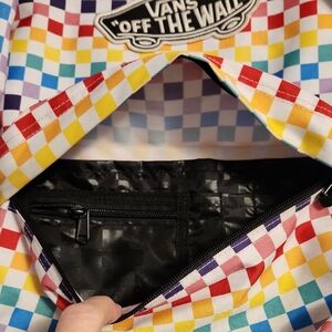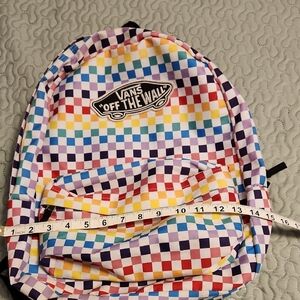 Vans backpack with a lively checkered design. Features a mix of colors. Ideal for daily use.