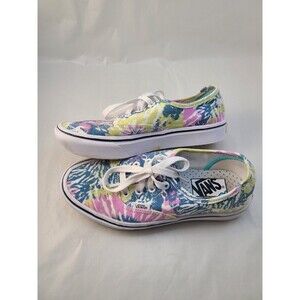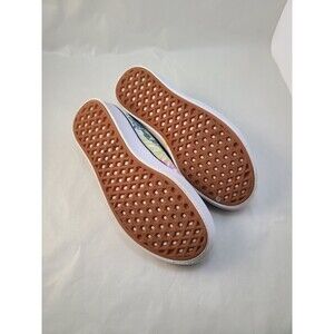 Step into bold comfort with these Vans ComfyCush Old Skool sneakers in women’s size 6.5. Featuring a vibrant orchid-inspired tie-dye canvas, these classic lace-up shoes combine retro style with modern comfort. The ComfyCush footbed offers plush support, while the white rubber sole and signature Vans side stripe complete the iconic look.