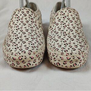 Vans Cream Pink Leopard Print Slip-On Sneakers Women's 9