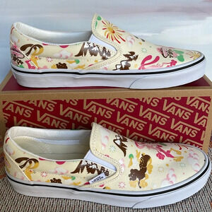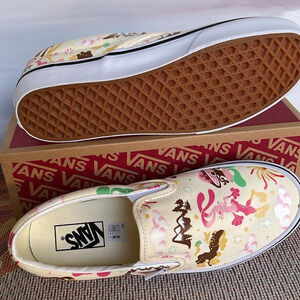 Vans Cream and Pink Patterned Slip-On Sneakers