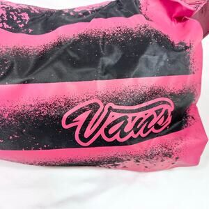 Introducing a Vans Crossbody Messenger Bag featuring a single shoulder strap design in a stylish pink and black color combination. This bag includes a zippered closure, durable polyester materials and designed for both fashion and function. This bag is brand new with tags.
