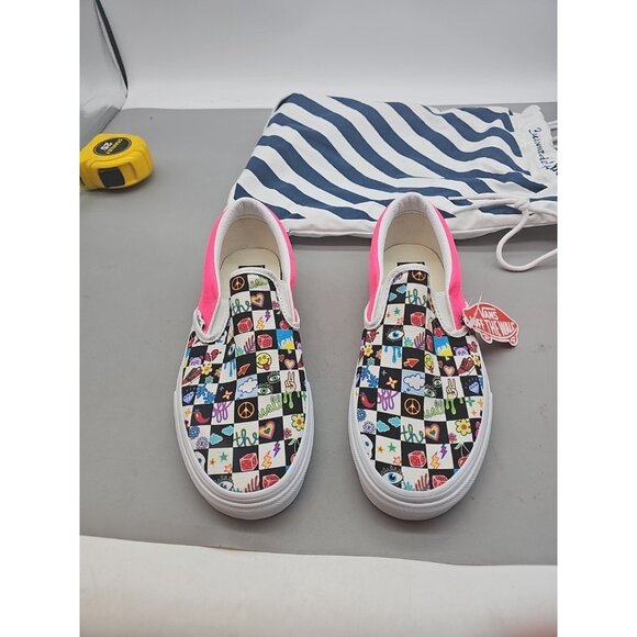 Vans Customs Classic Slip on Shoe Women's 8 Men's 6.5 Checkered Peace Roses New