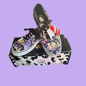 Vibrant Vans Villain sneakers with all your favorite Disney villains. Purple and black design. Perfect for playful adventures.