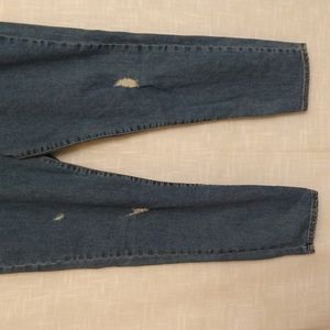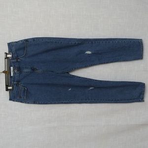 Blue denim distressed skinny jeans