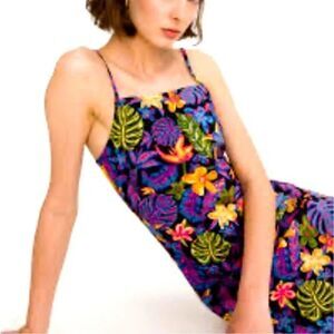 BY VANS HERE IS A WONDERFUL DRESS . IT IS 100% VISCOSE AND SLIP OVER STYLE. THIS ADORABLE DRESS IS DONE IN A TROPICAL PRINT OF YELLOW, MANGO, PINK, GREEN, BLUE FLOWERS OVER BLACK. IT FEATURES A SQUARE NECK AND ADJUSTABLE LINGERIE STRAPS. PERFECT FOR BEACH PARTIES! NEW WITH TAGS SIZE EXTRA LARGE, PLEASE NOTE THE MEASUREMENTS