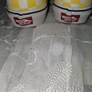 yellow/white checkerboard vans. unisex style. Pre-owned gently worn, wash, and cleanliness maintained. no stains or flaws. photos are of actual shoes being sold