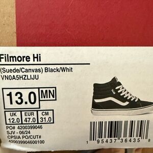 Vans Filmore Hi Black and White High-Top Sneakers Men’s 13 NEW