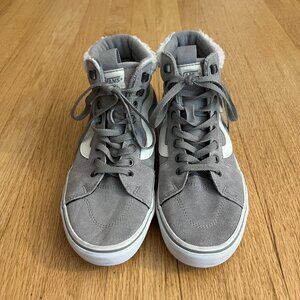 Vans Filmore High-Top Gray Sneakers- Women's Size 8.5. Gray/white canvas uppers, faux fleece trim, lace up. In great condition.