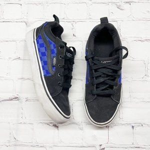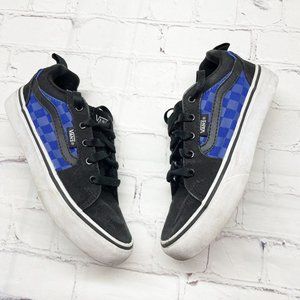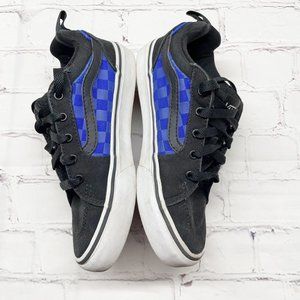 Vans Filmore Kids size 2 Skate Shoes Blue Checkered Black Canvas