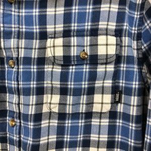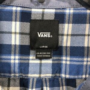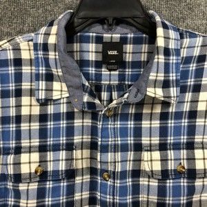 Vans Flannel Shirt Men Size Large Black/Blue Check Button Up Off The Wall Skate