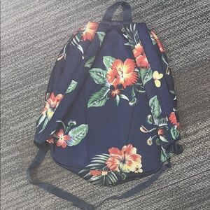 Stylish Vans backpack featuring a vibrant floral design on a blue background. Perfect for everyday use. Unisex item. Smoke and pet free home. Freshly washed and air dried. In preowned condition, some condition issues on bottom as pictured. All zippers work. Adjusting straps. Outside pocket.