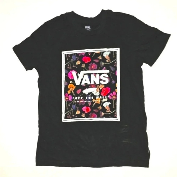 Vans Floral Graphic Tee Shirt Black with White/Multi size womens XS