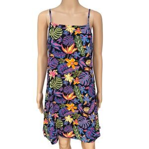 Vans Floral Slip Dress Tropical Sundress Black Neon Sleeveless size M