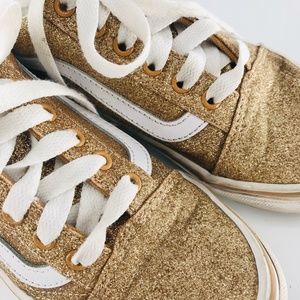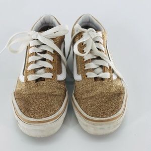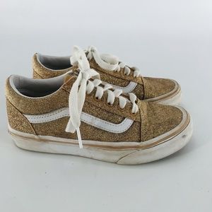 Vans Girl's Gold Sparkle Old School Sneakers Size 2.5