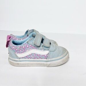 Vans Girls Ward Sneakers Blue Pink Cheetah Size 6 Toddlers