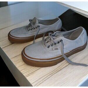 Vans Authentic Gray Canvas Sneakers Mens 7.5 Womens 9 Low Top Skate Shoes Gum Sole Y2K Streetwear Skatercore