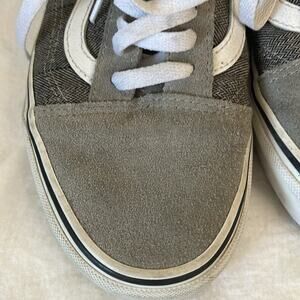 Classic Vans sneakers. Gray tweed and suede with white leather accents. Ideal for everyday wear. Men’s size 7, women’s 8.5.