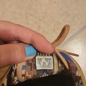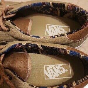 Vans Green Khaki Canvas & Leather Shoes w/ Printed Interior M 8.5 W 10
