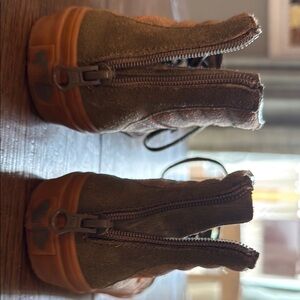 Stylish and durable, these Vans high-top sneakers in olive green are perfect for active kids. Featuring a comfortable fit and classic design, they are ideal for everyday wear. Could use new laces to make them look brand new again. Rarely worn.
